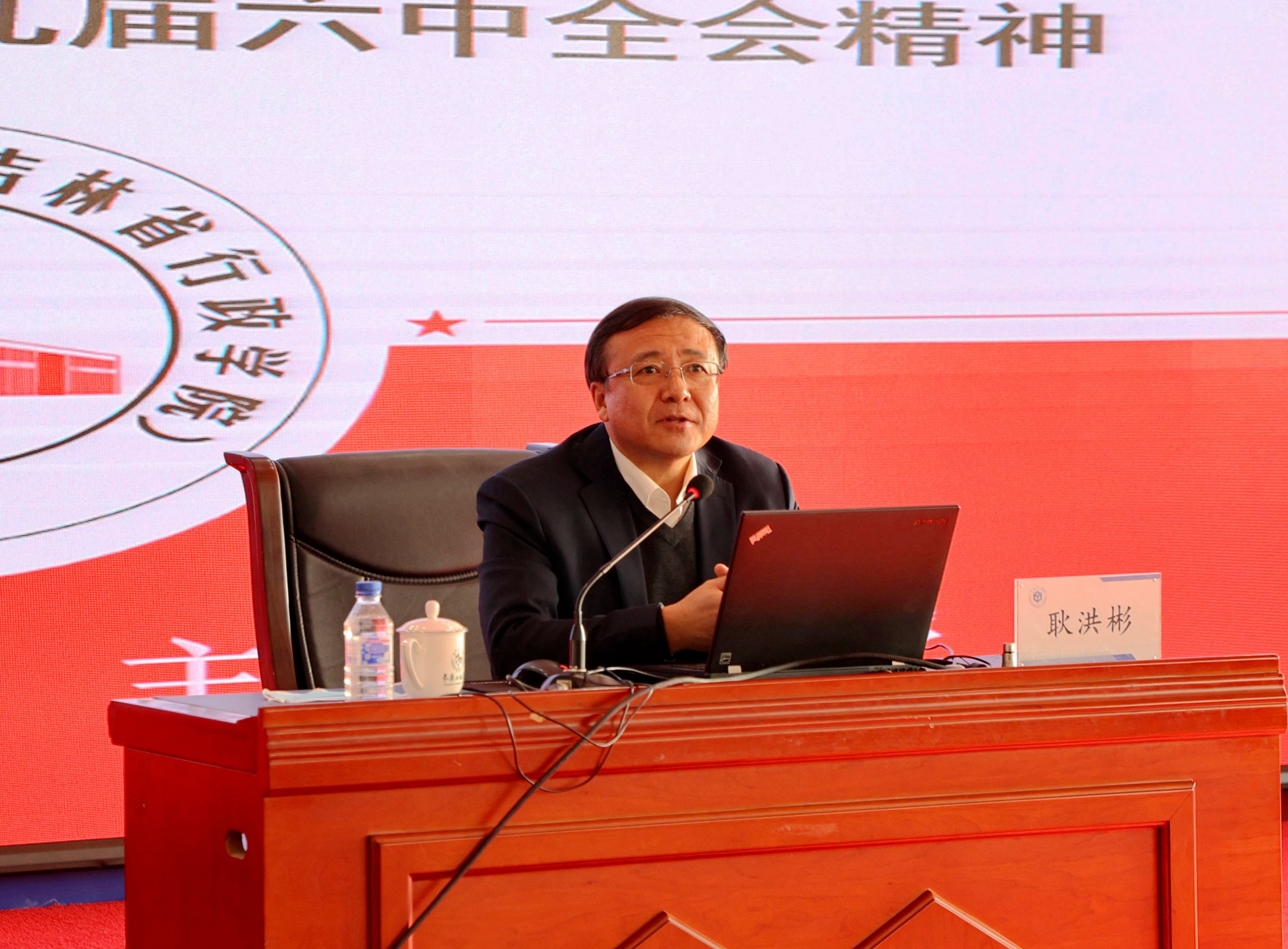 报告会上,耿洪彬教授从深入领会党的十九届六中全会召开的历史背景和重大意义;深入领会党的十九届六中全会《决议》的主要内容和核心要义;把学习贯彻党的十九届六中全会精神作为一项重要政治任务抓紧抓好等三个方面宣讲了党的十九届六中全会精神。耿洪彬教授在报告中指出,站在新的历史起点上,回顾过去,展望未来,全面总结党的百年奋斗重大成就和历史经验特别是改革开放40多年来的重大成就和历史经验,既有客观需要,也具备主观条件。在党的十九届六中全会上通过《中共中央九游j9官网入口(中国)官方网站党的百年奋斗重大成就和历史经验的决议》是在建党百年历史条件下开启全面建设社会主义现代化国家新征程、在新时代坚持和发展中国特色社会主义的需要;是增强政治意识、大局意识、核心意识、看齐意识,坚定道路自信、理论自信、制度自信、文化自信,做到坚决维护习近平同志党中央的核心、全党的核心地位,坚决维护党中央权威和集中统一领导,确保全党步调一致向前进的需要;是推进党的自我革命、提高全党斗争本领和应对风险挑战能力、永葆党的生机活力、团结带领全国各族人民为实现中华民族伟大复兴的中国梦而继续奋斗的需要。