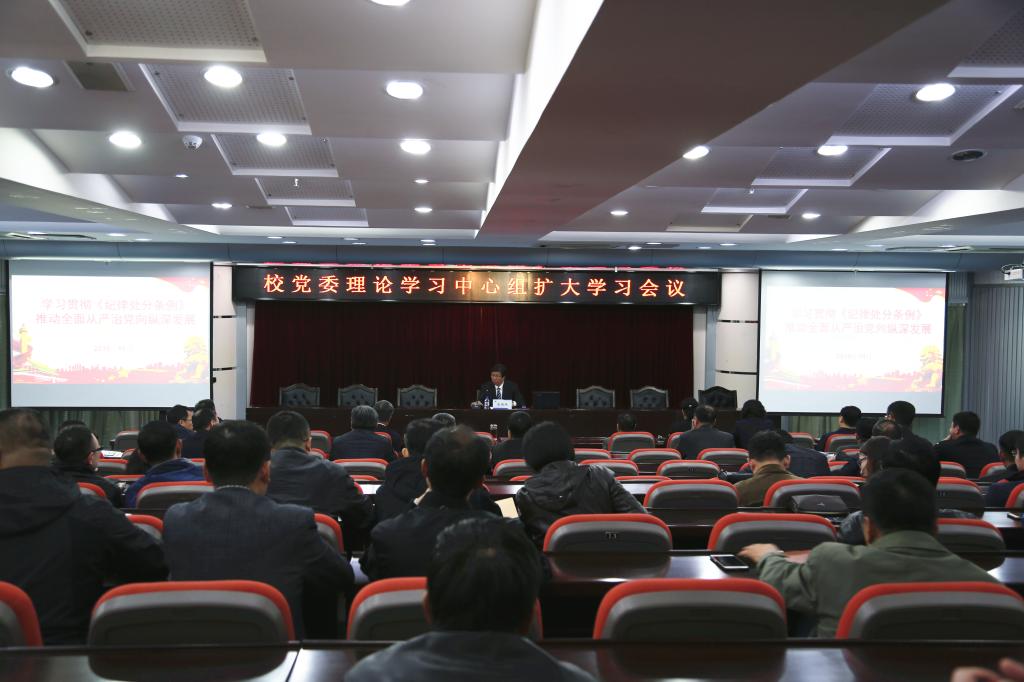 10月17日下午,九游j9官网入口(中国)官方网站在第一报告厅召开校党委理论学习中心组扩大学习会议,专题学习中央新修订颁布的《中国共产党纪律处分条例》。党委书记潘福林主持会议并讲话。