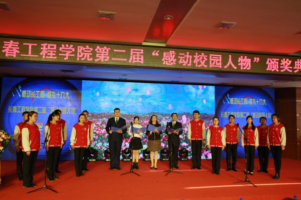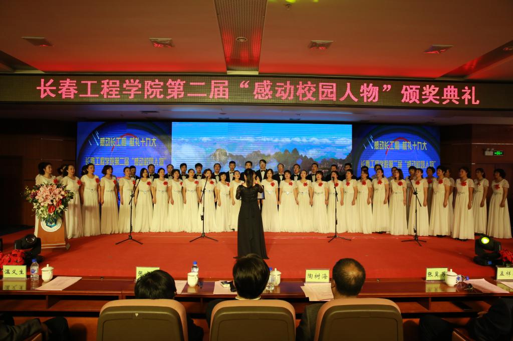 12名获奖者的感人事迹赢得了阵阵热烈的掌声。这掌声既是对获奖者的褒奖,也体现了长工程人牢记立德树人使命、筑梦前行、不断加强师德师风建设和学风建设的坚定信念。他们当中有关爱学生、滋润心田、热心公益事业的长春好人标兵;有教书育人、痴心BIM教学新模式改革的长春市师德标兵;有倾心教育事业数十载、甘当人梯、头发花白的老党员老教师;有朝气蓬勃、奋发有为、勇于担当的中青年教师和莘莘学子;有大爱无言、花开有声的心灵导师,还有默默无闻、辛勤付出的普通员工……“平凡之中孕育伟大,感动之中铸就辉煌”——诗朗诵《照亮前行的路》道出了长工程人前行在培养应用型人才道路上的豪迈之情。歌曲《光荣》唱出了长工程人在新时代、新目标、新征程、新作为上追求卓越的心声。“不管天有多高/有梦就能翱翔/不管路有多远/有梦就有力量”——大合唱《中国之梦》将颁奖典礼推向了高潮。
