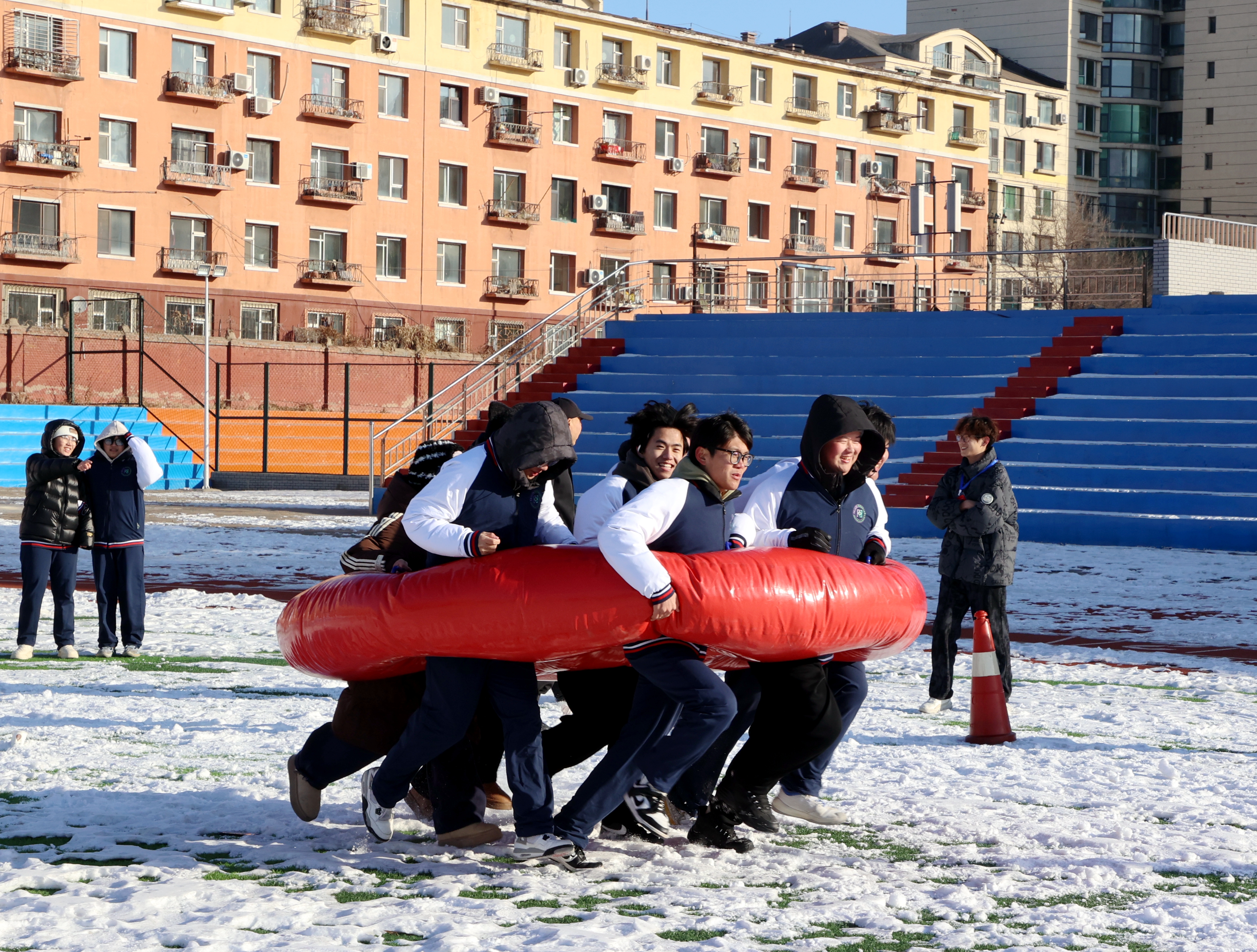 此次运动会共有雪圈竞速、毛毛虫竞速、运转乾坤、财源滚滚、足球踢准、八仙过海、雪地拔河七个项目。
