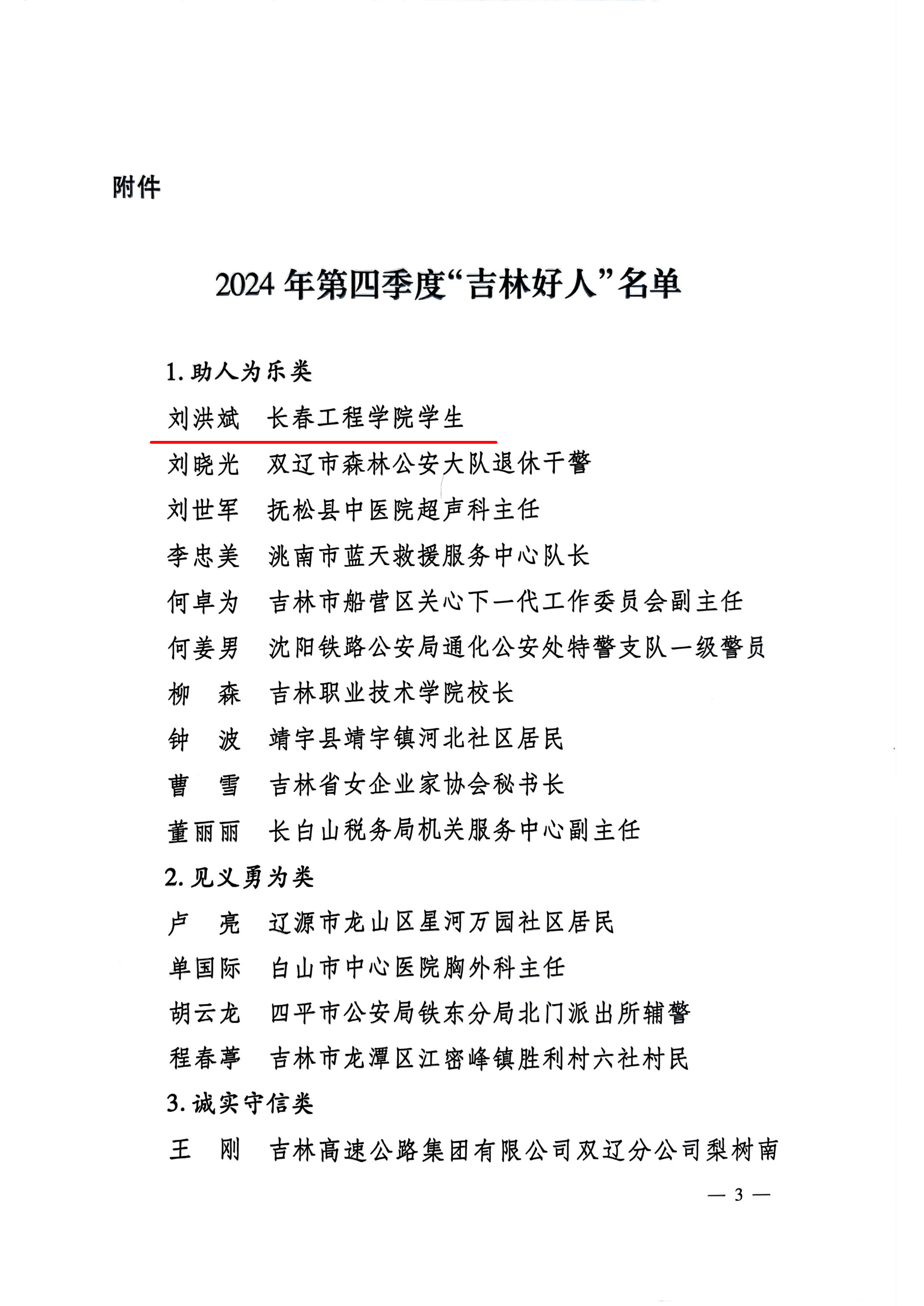 我校学子刘洪斌获评2024年第四季度“吉林好人”
