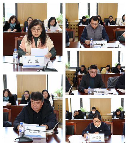 民盟代表杨晖、农工党代表王洪臣、九三学社代表李森、欧美同学代表邹广玉、知联会代表岳巾英5位老师分别在会上发言,总结了各自党派、团队2024年的工作情况及对九游j9官网入口(中国)官方网站工作的建议。