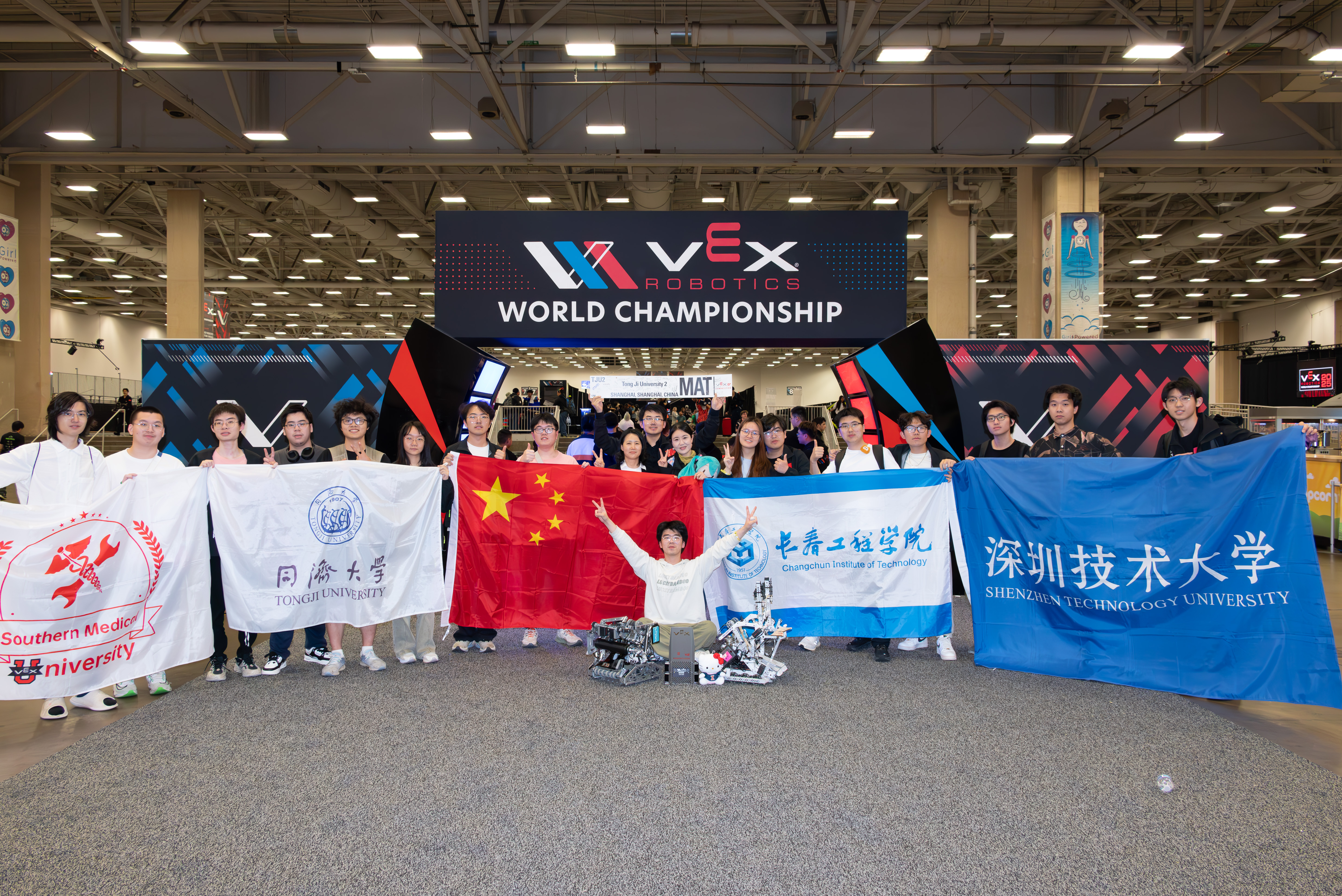 5月9日至11日,2024-2025年VEX机器人世界锦标赛在美国得克萨斯州达拉斯市举行,共有来自中国、美国、加拿大、阿联酋、澳大利亚、英国、新西兰等45个国家和地区的110支大学组参赛队同场竞技,我校CSTU赛队一路突围晋级世锦赛四强,创下历史最佳战绩。
