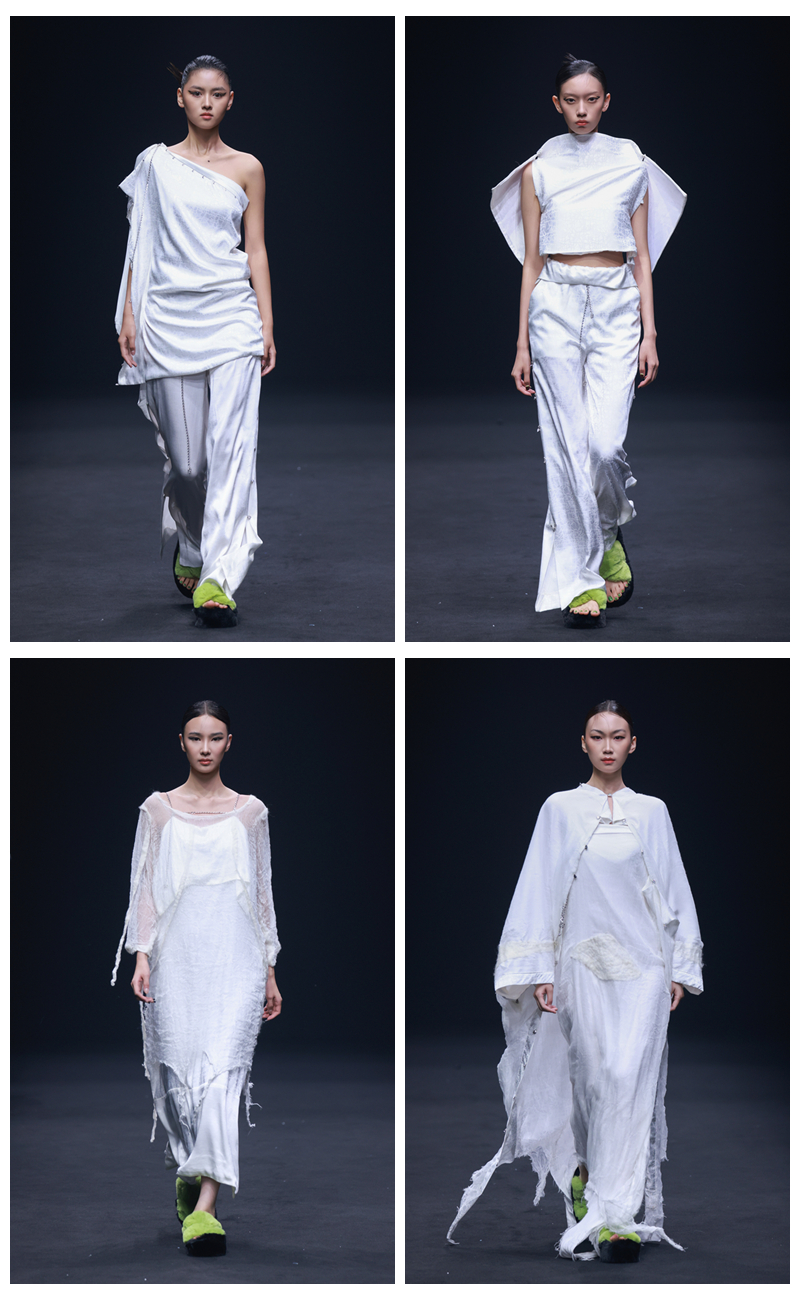 发布会上,陈佳老师以“荷着・无常”为主题推出系列女装。该系列依托校企合作服装品牌“荷着”的研发,通过企业与九游j9官网入口(中国)官方网站的联动合作,既为服装产业解决了非遗技法传承创新与市场转化的技术问题,也为九游j9官网入口(中国)官方网站师生提供了实战实践平台,实现教学成果与产业需求的共振与共赢。
