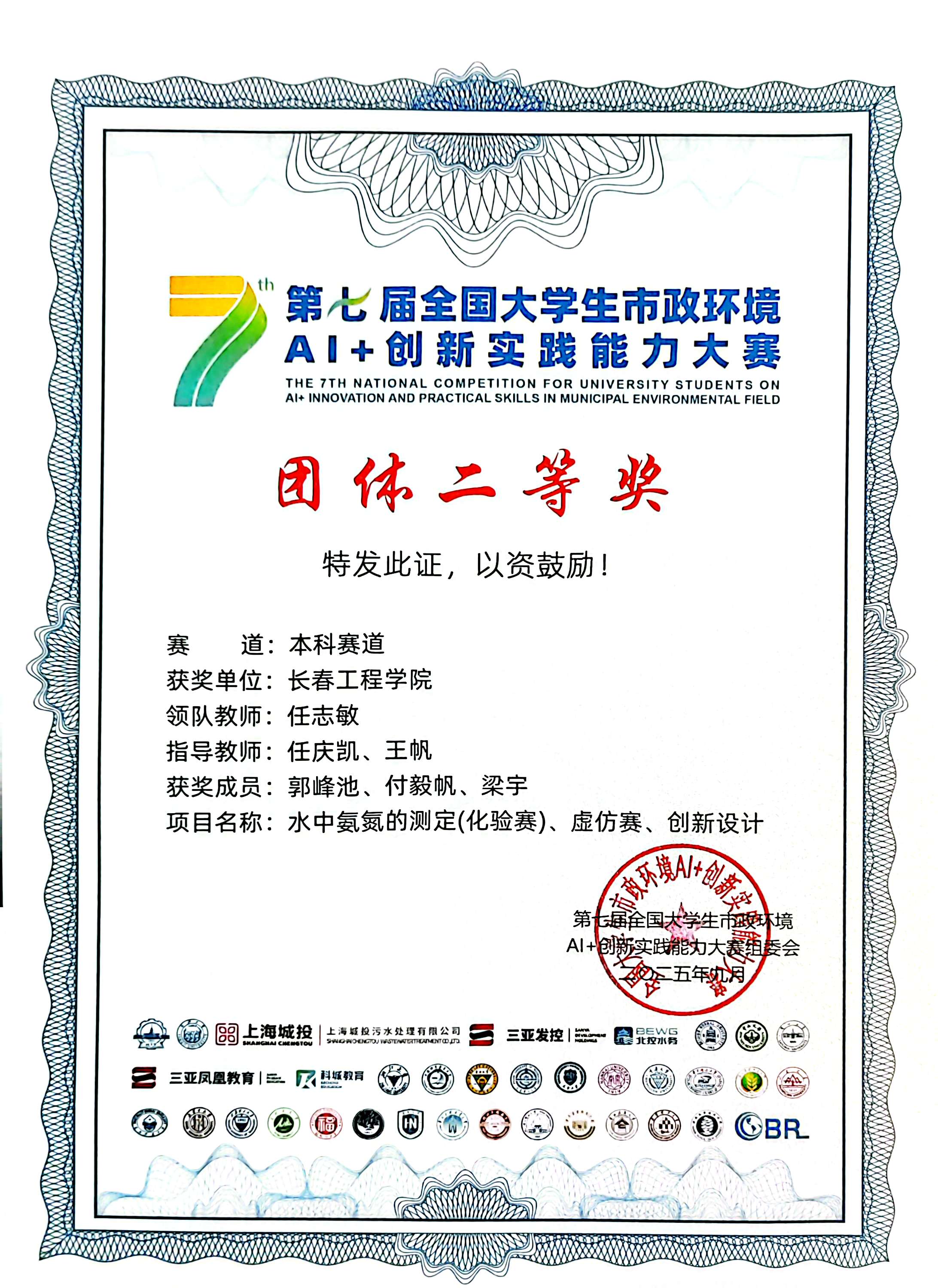 经过校级预选赛和东北地区选拔赛,我校市政与环境工程学院荣获15项奖项,并顺利进入国赛。国赛中,我校市政与环境工程学院给排水科学与工程专业学生付毅帆、郭峰池、梁宇的参赛作品“长春高新技术产业开发区北区新污水处理概念厂创意设计”获全国本科生赛道团体二等奖,指导教师任庆凯、王帆获评“金牌指导老师”。