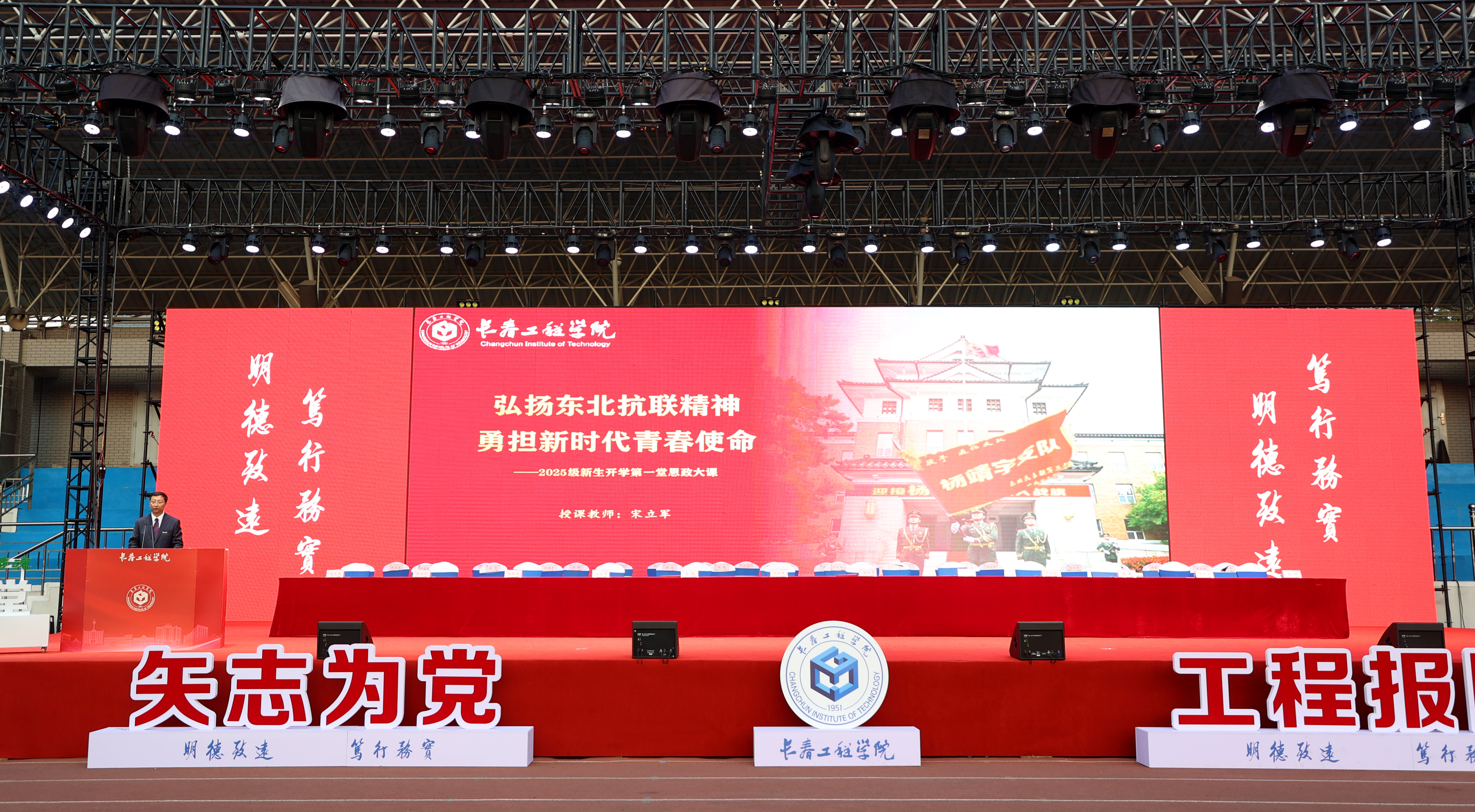 九游j9官网入口(中国)官方网站党委书记宋立军以《弘扬东北抗联精神 勇担新时代青春使命》为题进行讲授,带领全体新生回顾了在中国共产党领导下东北抗联十四年艰苦卓绝、浴血奋战的光辉历史。通过“回望烽火岁月,深刻认识东北抗联的艰苦卓绝与历史伟绩”和“感悟精神力量,深刻理解东北抗联精神的时代内涵与伟大意义”两部分内容,生动阐述了这一部用热血和生命书写的英雄史诗,以“传承历史使命,将抗联精神转化为奋进新时代的强大动力”,嘱咐新同学们作为新时代的大学生,传承和弘扬好东北抗联精神。