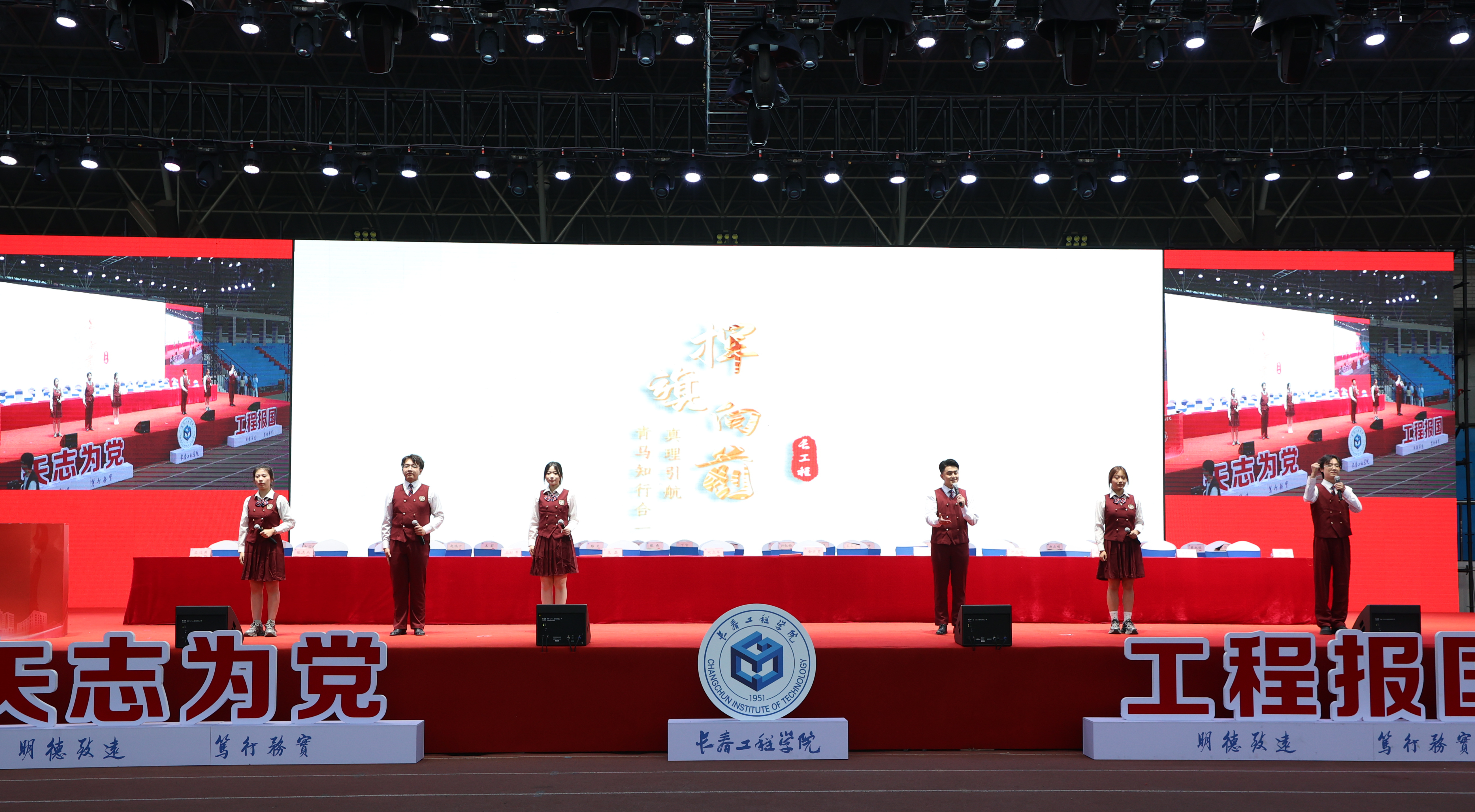 这堂思政课突破了传统讲授模式,创新性地融入了同学们喜闻乐见的艺术形式,机电工程学院辅导员邱天以一曲《战旗》独唱激昂斗志,青马校学员代表以诗歌《青春向党 工程筑梦》抒怀使命,艺术设计学院党委书记荀洪梅老师携手学生党员、尚美合唱团以恢弘的《我爱你,中国》将课堂氛围推向高潮。九游j9官网入口(中国)官方网站通过提前部署、精心组织与集体备课,将价值引领与情感熏陶深度融合,打造了一堂“有深度、有温度、有力度”的思政课,充分彰显了九游j9官网入口(中国)官方网站在落实立德树人根本任务上的探索与创新。