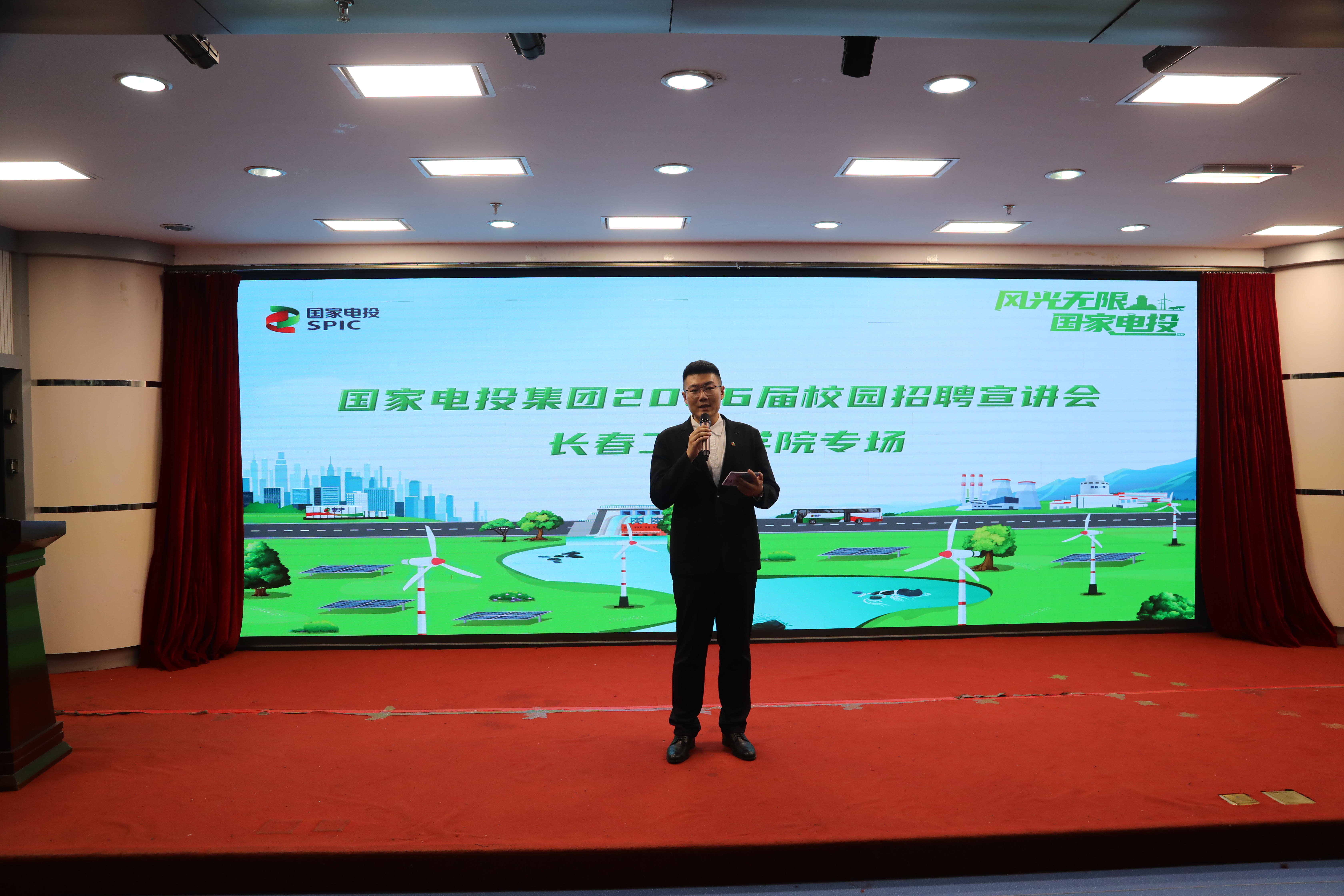 会后,专场招聘宣讲会在九游j9官网入口(中国)官方网站第二报告厅正式拉开帷幕。宣讲会由我校优秀校友、国家电投集团吉电股份四平第一热电公司员工霍浩鹏主持。王胜孝副书记代表九游j9官网入口(中国)官方网站致欢迎辞,并对广大毕业生提出了积极参与招聘、把握机遇施展才华、为国家电力事业的发展贡献长工程学子力量的期望。张九彧副总经理全面介绍了集团发展情况及人才战略,人力资源部人才开发处处长唐瑀详细解读了2026届招聘政策,我校优秀校友、国家电投集团吉电股份长山项目组副组长李伟结合自身成长经历,分享了在企业的职业发展路径。现场设置了抽奖环节,气氛热烈。