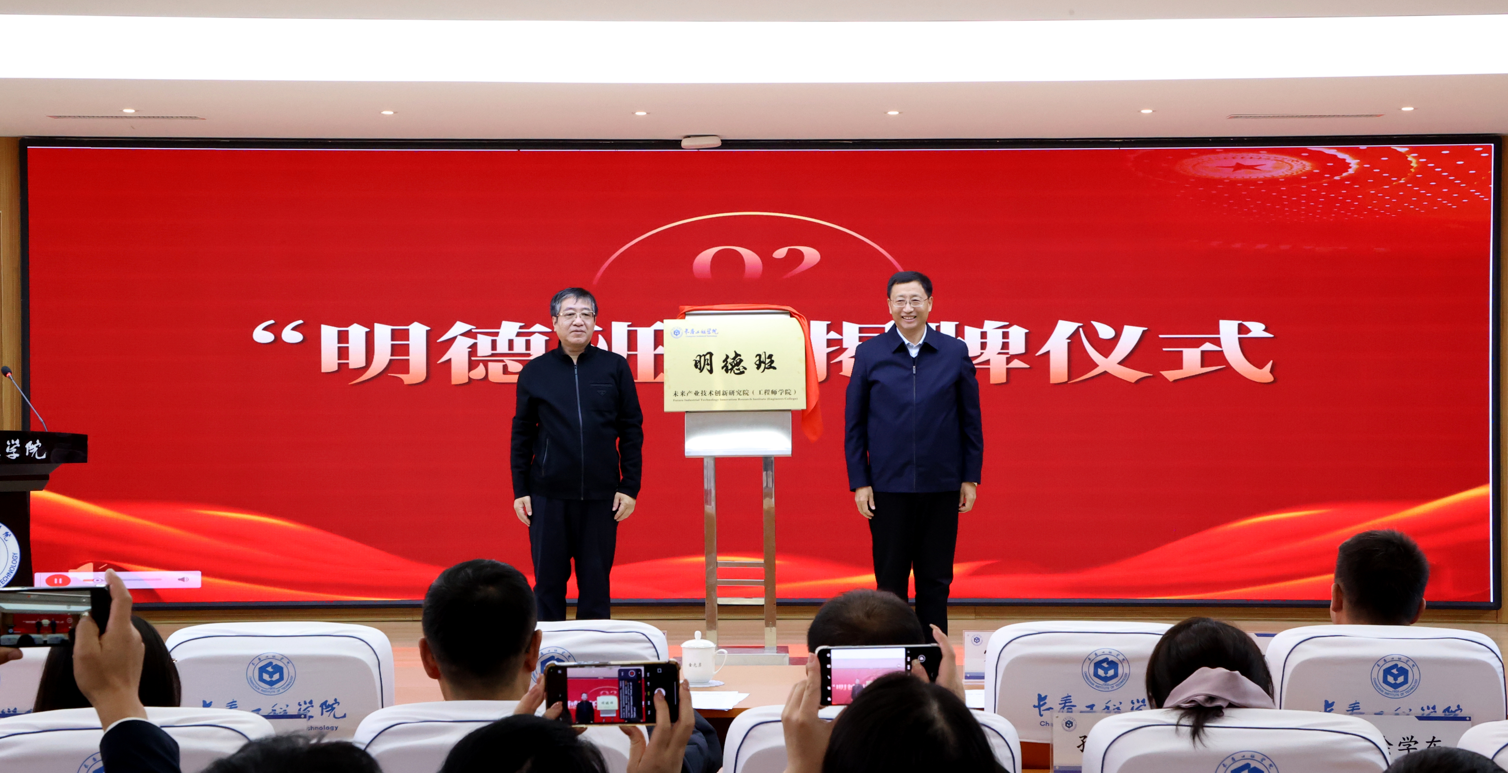 仪式上,宋立军书记、金光勇校长为“明德班”揭牌。