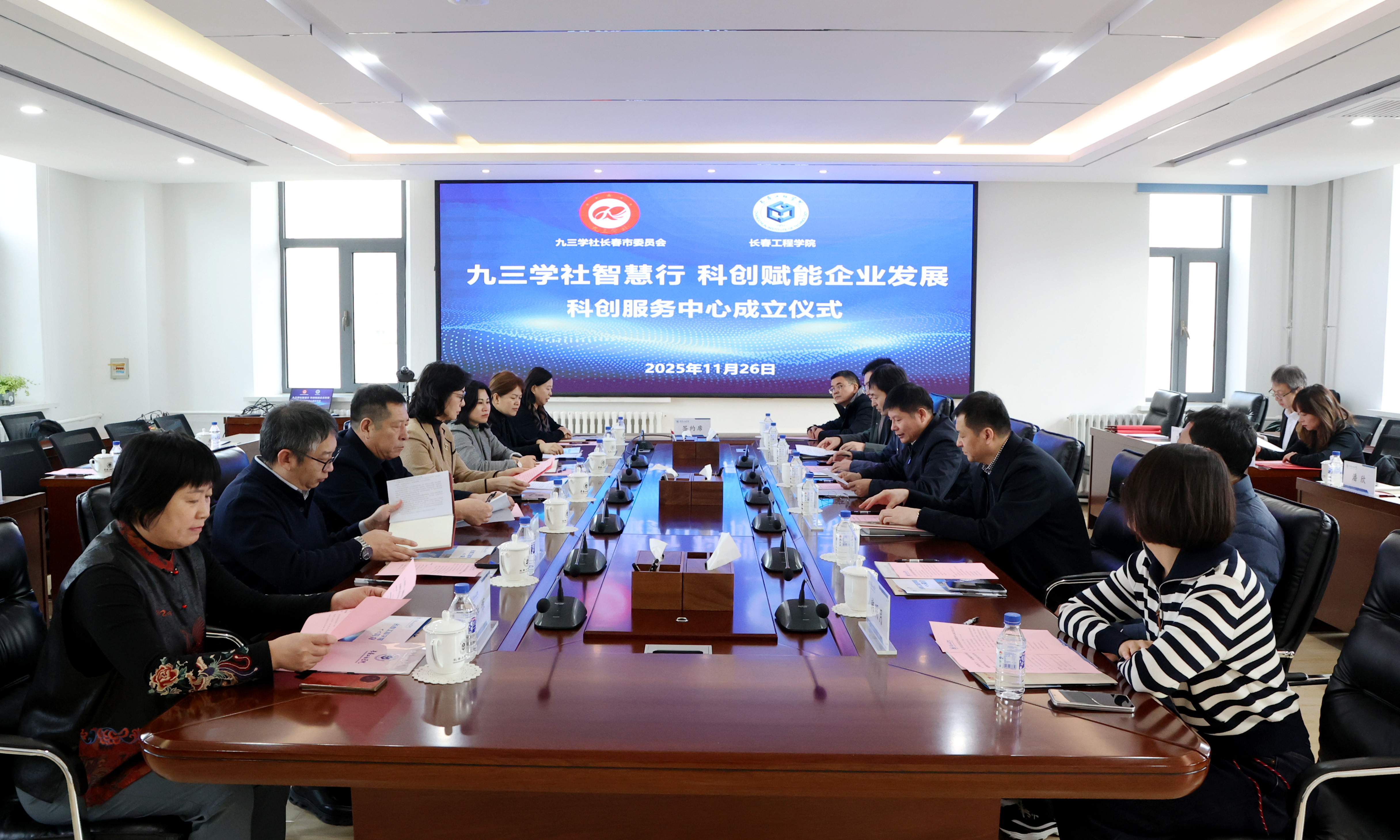 11月26日,九三学社长春市委员会科创服务中心成立仪式在我校举行。长春市人大常委会副主任、九三学社长春市委员会主委赵辉,长春市科学技术局副局长李长翠,吉林省工信厅信息化和软件服务业处副处长张昕等领导,海恩达高科技股份有限公司等企业代表,我校副校长尹志刚参加仪式。