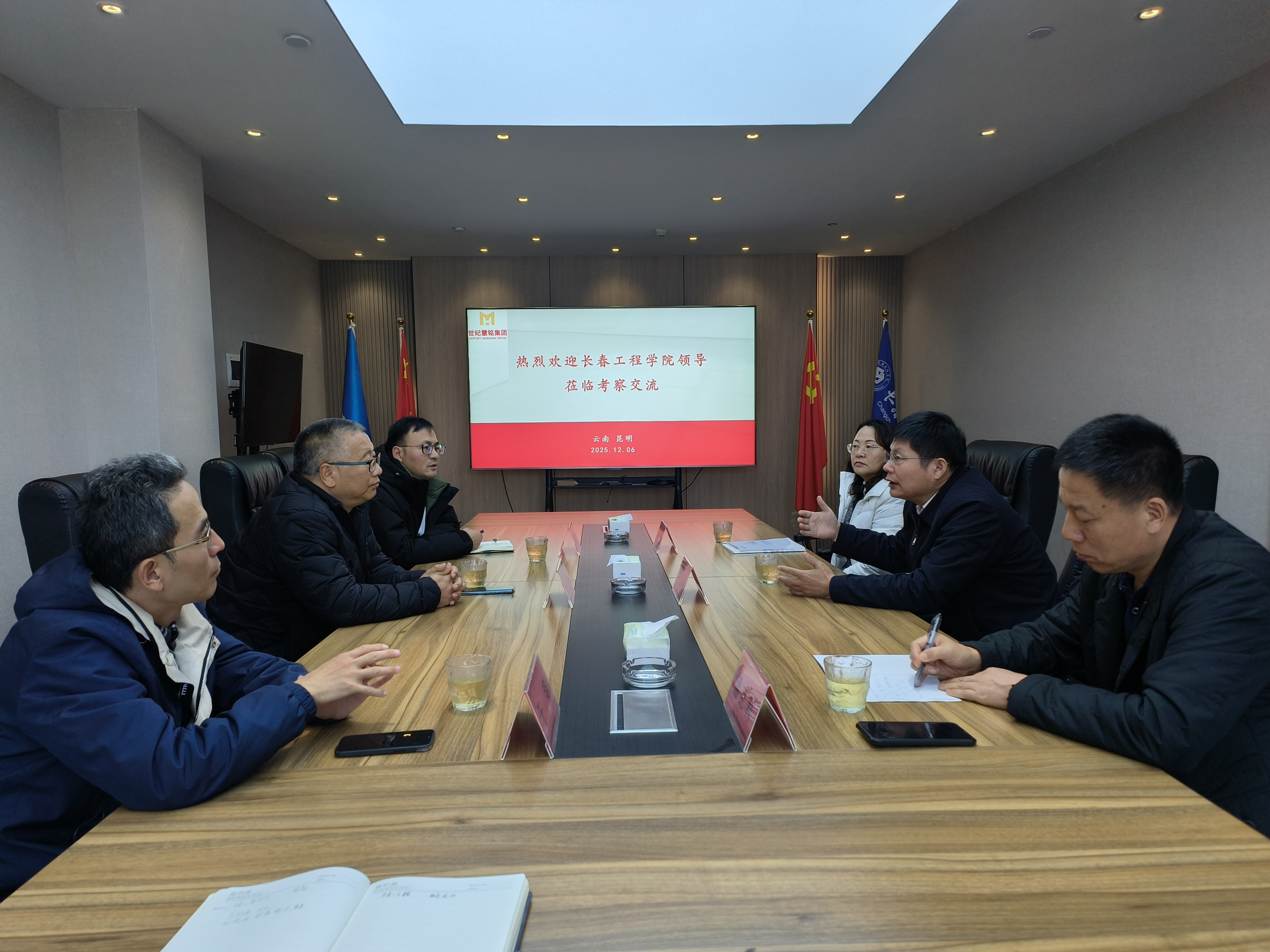 在云南世纪慧铭集团有限公司,尹志刚副校长向校友企业家余文林董事长表达了母校的问候和关怀,对校友企业取得的成就表示祝贺,并感谢校友及企业始终心系母校、支持母校的建设与发展。