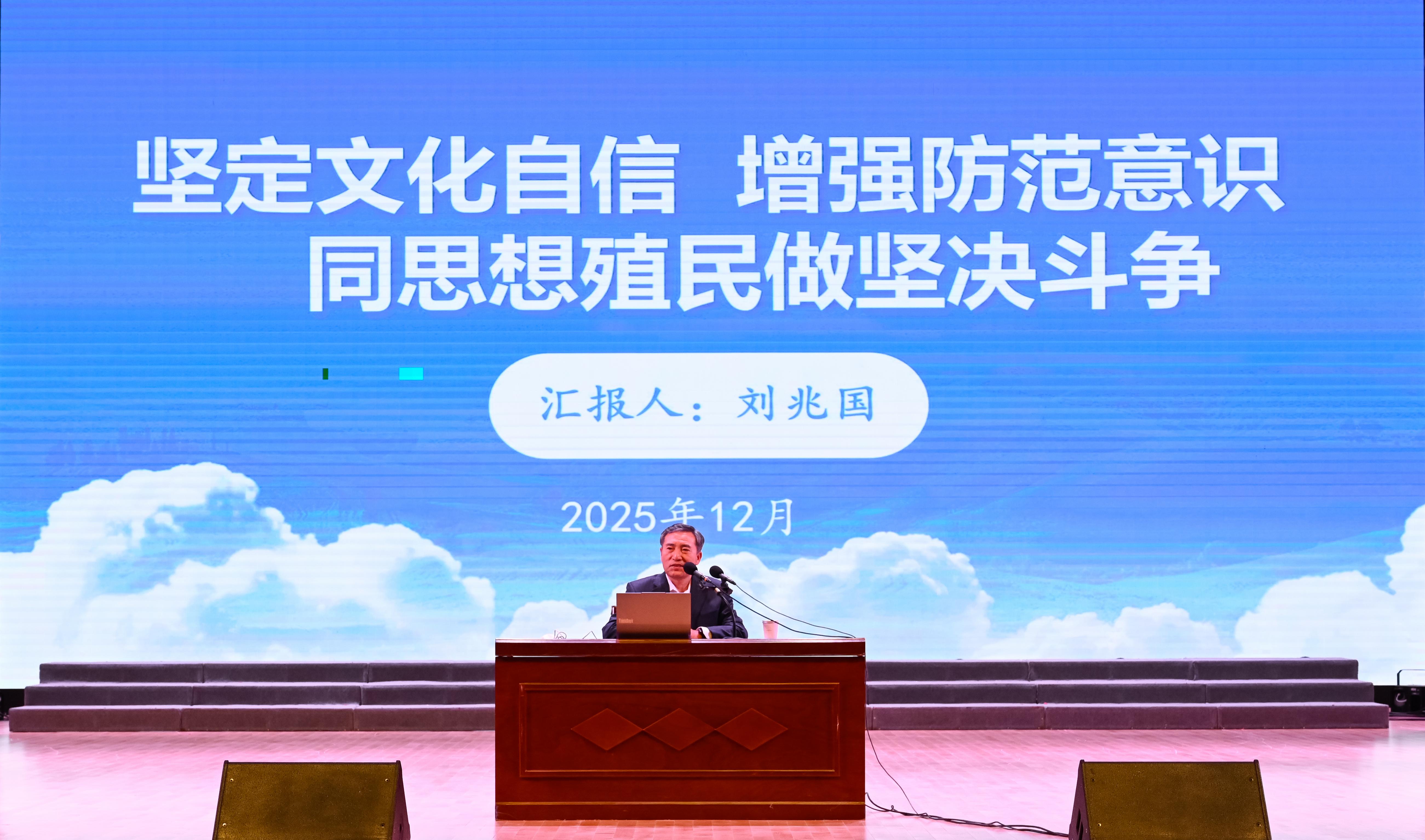 仪式后,新一届关工委常务副主任刘兆国老师为新一期青马学员作《坚定文化自信 增强防范意识 同思想殖民做坚决斗争》专题授课,阐释思想殖民概念、特征与渗透手段,剖析危害、分享反制实践案例,引导学员坚定文化认同、提升思辨能力,守护意识形态安全。