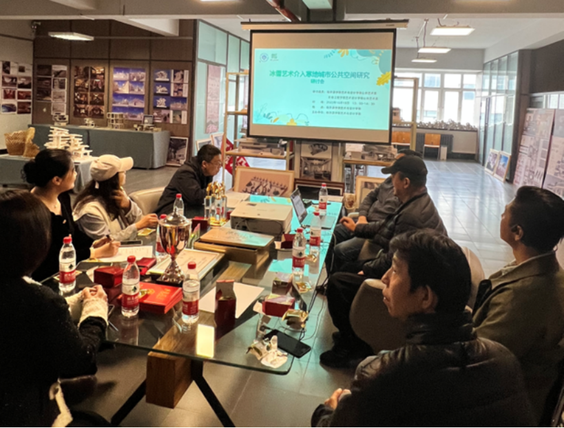 科创团队成员与哈尔滨学院冰雪艺术中心主任祝劲松副教授团队围绕“寒地城市公共艺术与地域文化传承发展”主题,针对建构策略和研究方法,进行了深入探讨,收集了相关研究资料。在走访哈尔滨学院冰雪艺术中心的过程中,团队成员还与冰雪艺术中心的多位老师就冰雪文化、艺术的理论研究和实践探索等方面进行了深入交流。