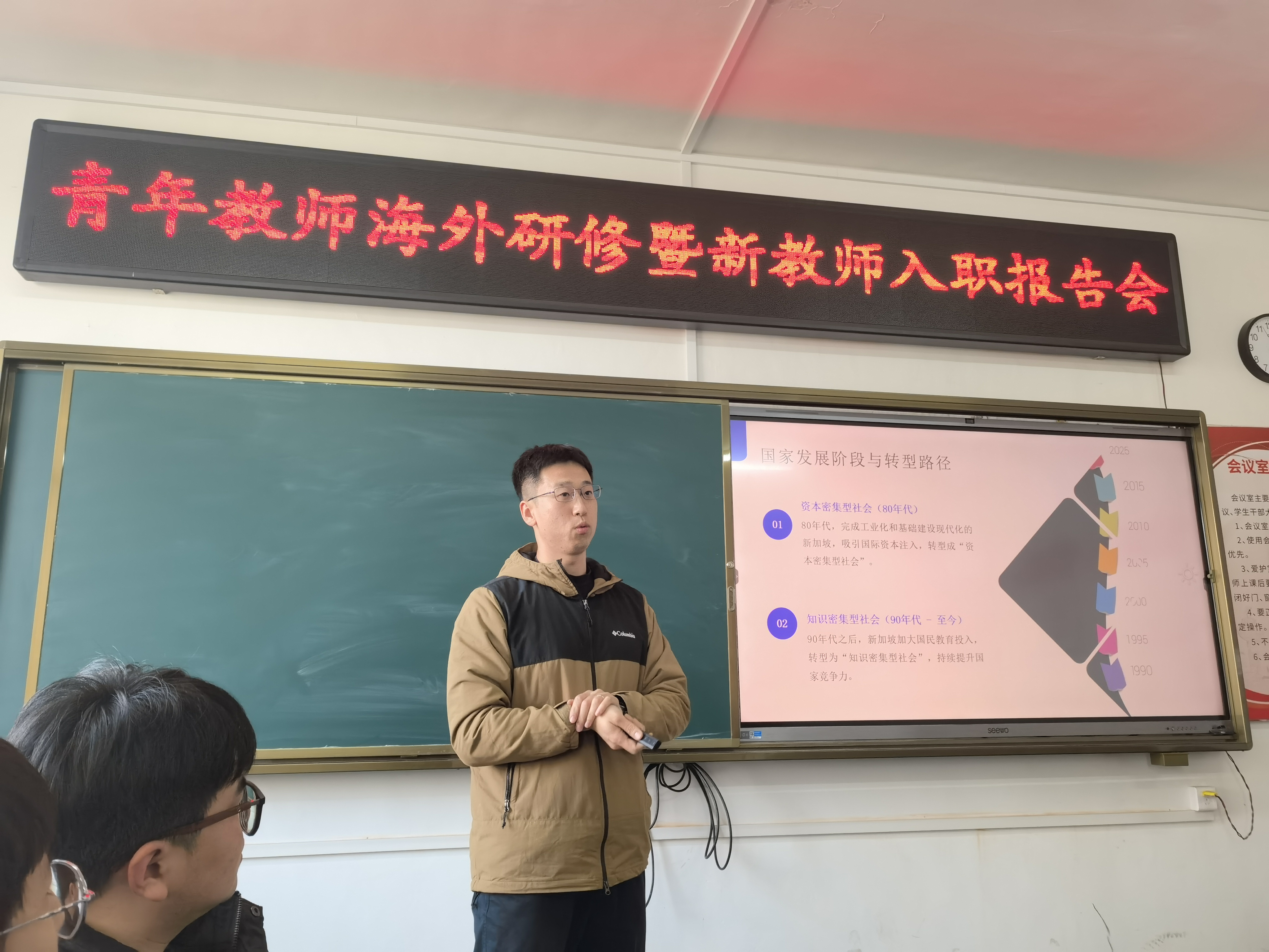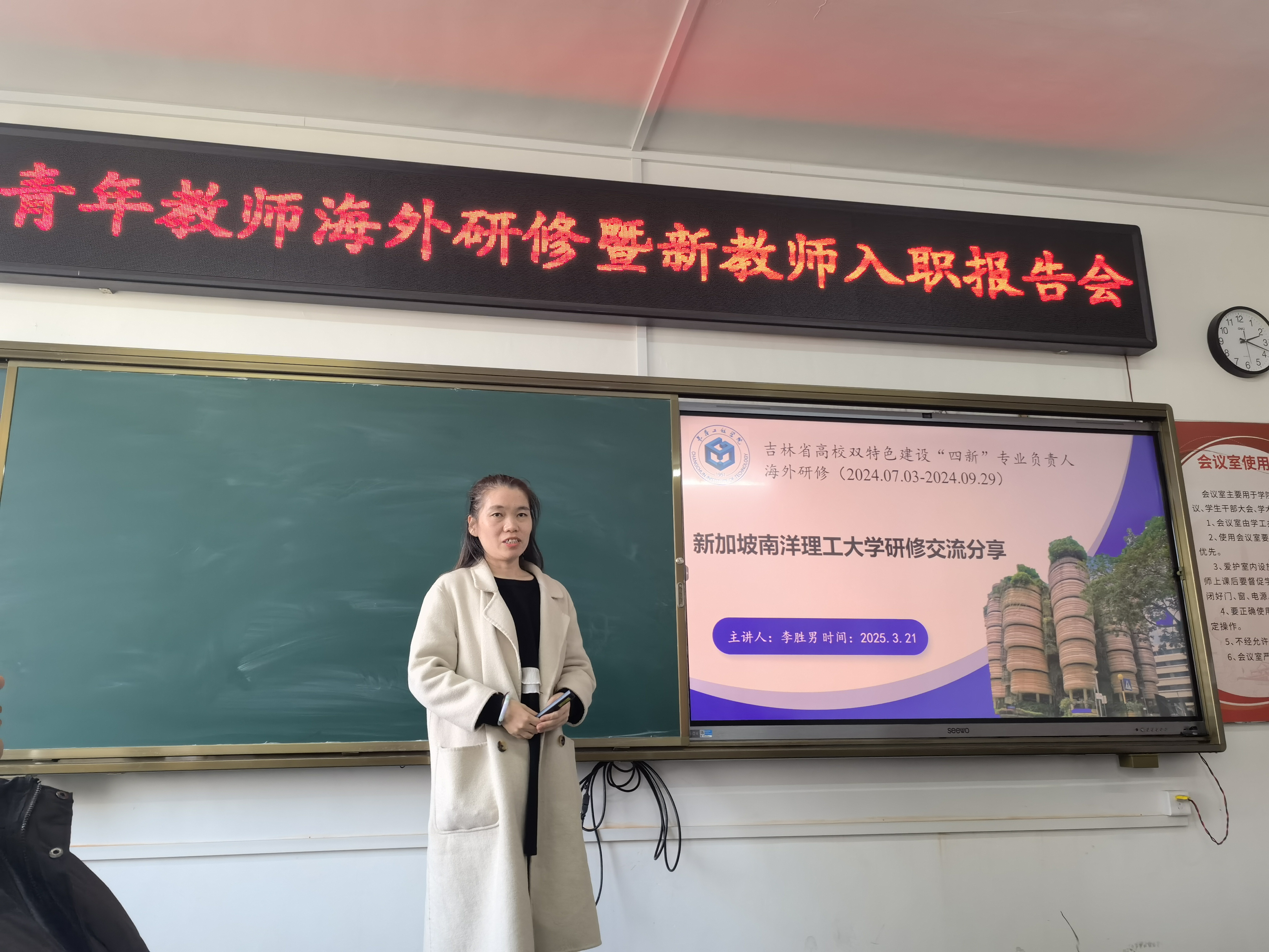 报告会上,李胜男和杨博然两位青年教师分享了在新加坡南洋理工大学研修期间的见闻、经历与收获。南洋理工大学作为全球顶尖的研究型大学,不仅拥有世界一流的学术资源和科研平台,还在工程科学与技术领域展现了卓越的实力;这段访学经历不仅拓展了二位青年教师的教育与学术视野,同时也更加坚定了他们在国际学术领域深耕的决心,为其今后的教学与科研工作注入了新的动力。