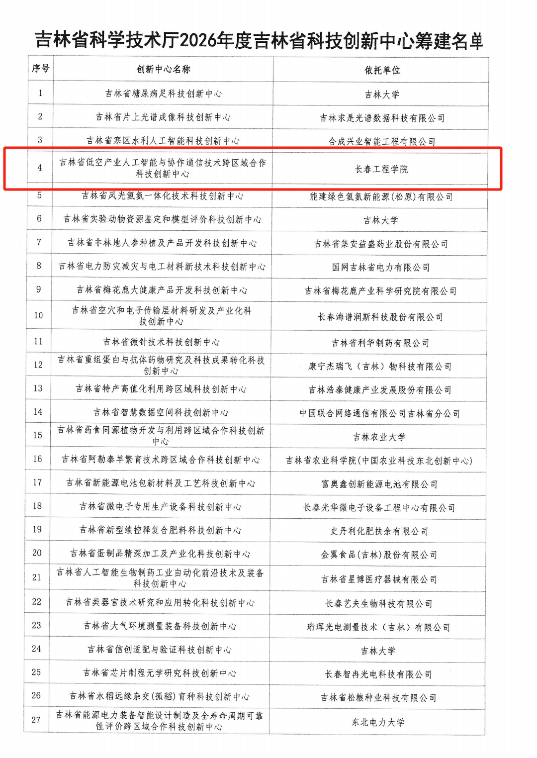 根据《吉林省科技创新平台管理办法》,经形式审查、专家复评,由我校计算机技术与工程学院赵佳教授团队主持申报的“吉林省低空产业人工智能与协作通信技术跨区域合作科技创新中心”和工程管理学院刘广杰教授团队主持申报的“吉林省智能建造机器人场景效能验证与应用联合科技创新中心”批准筹建。