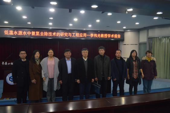 报告会上,李伟光教授介绍了他带领团队在“低温水源水中氨氮去除技术的研究与工程应用”方向做出的原创性成果。系列成果包括:筛选获得了可去除 1-2℃水源水中氨氮的新菌种;开发了“原位增殖生物强化技术”;首次提出了氯/紫外技术去除水中的氨氮,降低氯化消毒副产物的生成量,提高饮用水水质安全;首次采用原位增殖生物强化和氯/紫外耦合技术应用于水厂中。李教授的研究成果彻底解决了去除低温水源水中氨氮的难题,取得了显著的经济效益和社会效益。此次学术报告内容丰富,现场气氛热烈,与会的180余名师生均表示受益匪浅。
