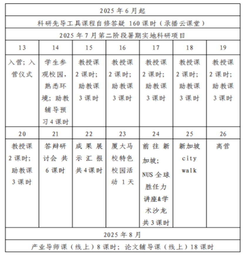 1.《暑期实地科研项目》课程安排