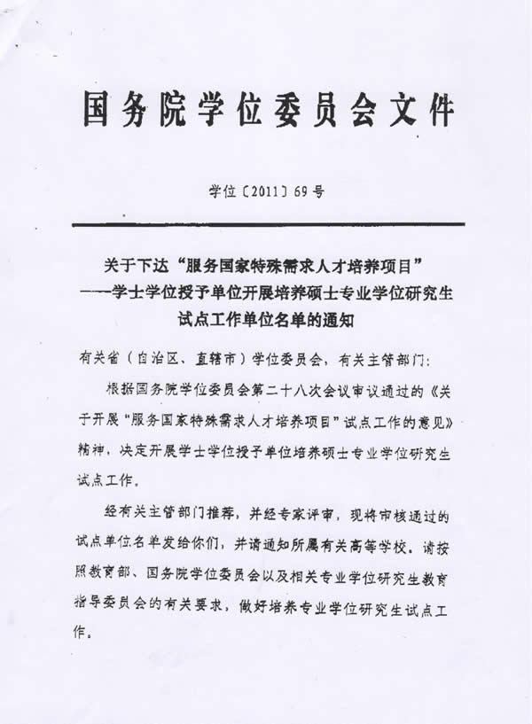 九游j9官网入口(中国)官方网站下达“服务国家特殊需求人才培养项目”—学士学位授予单位开展培养硕士专业学位研究生试点工作单位名单