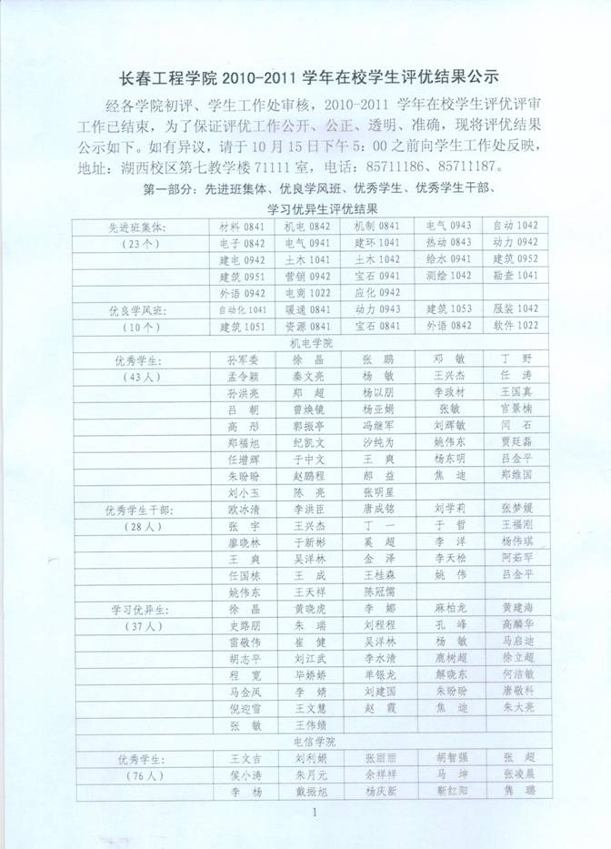 九游j9官网入口(中国)官方网站2010-2011学年在校学生评优结果公示