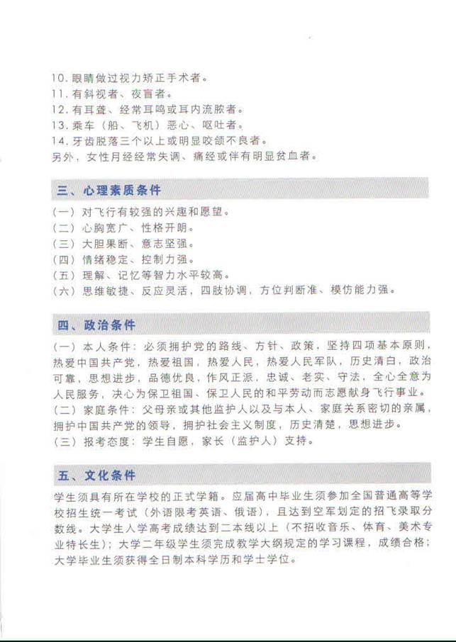 附件二:空军招收飞行学员自荐条件。