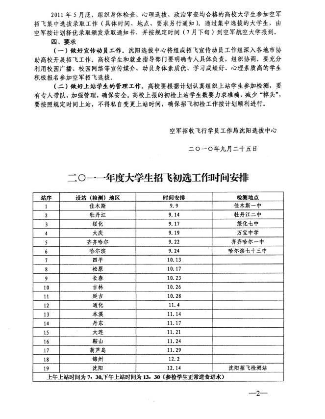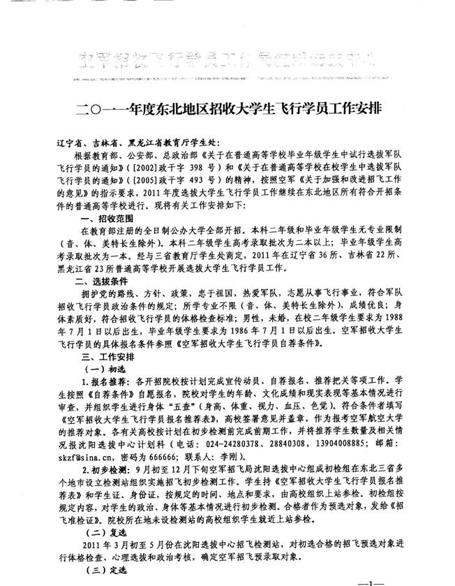 附件一:2011年度东北地区招收大学生飞行学员工作安排。