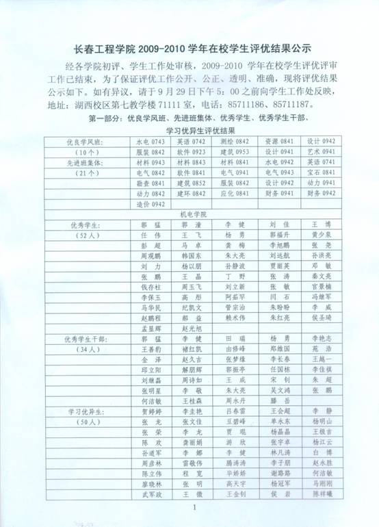 九游j9官网入口(中国)官方网站2009—2010学年在校学生评优结果公示