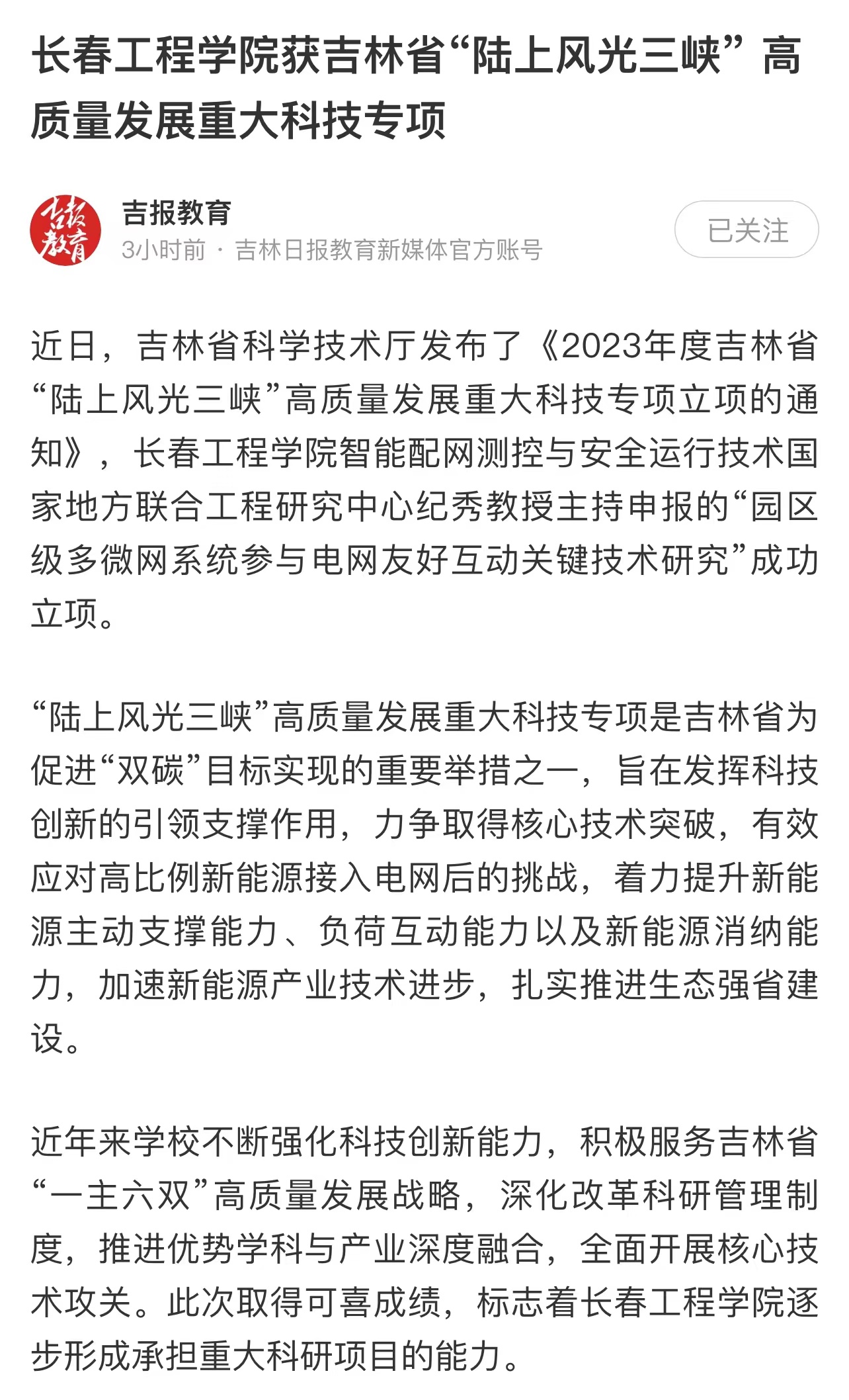 【人民日报-吉报教育】九游j9官网入口(中国)官方网站获吉林省“陆上风光三峡” 高质量发展重大科技专项