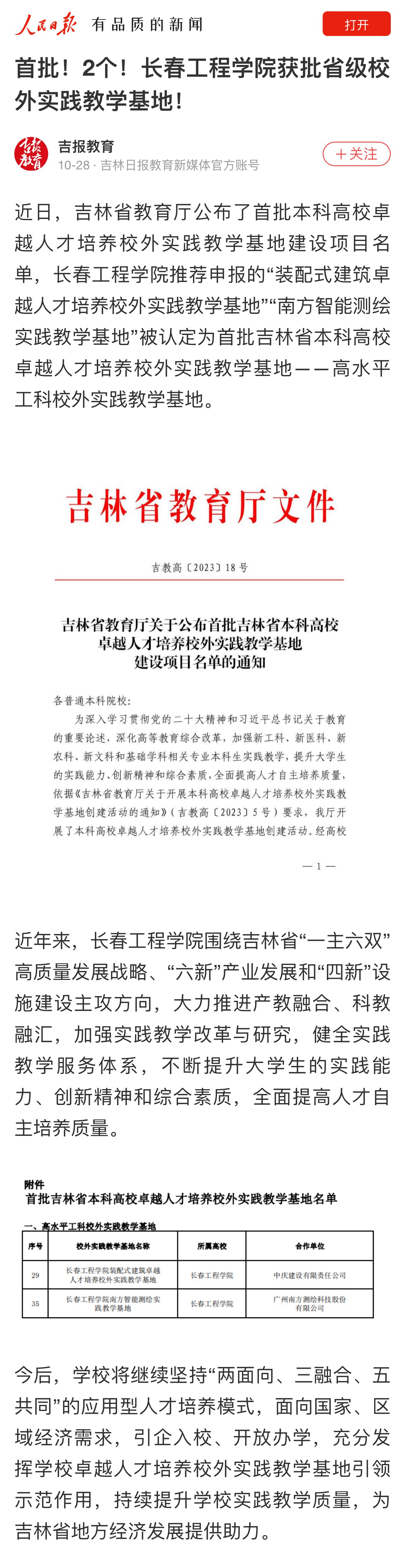 【人民日报-吉报教育】首批!2个!九游j9官网入口(中国)官方网站获批省级校外实践教学基地!