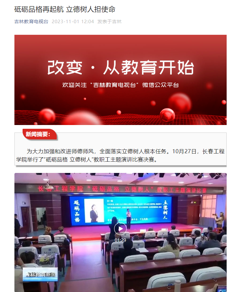 【吉林教育电视台】砥砺品格再起航 立德树人担使命