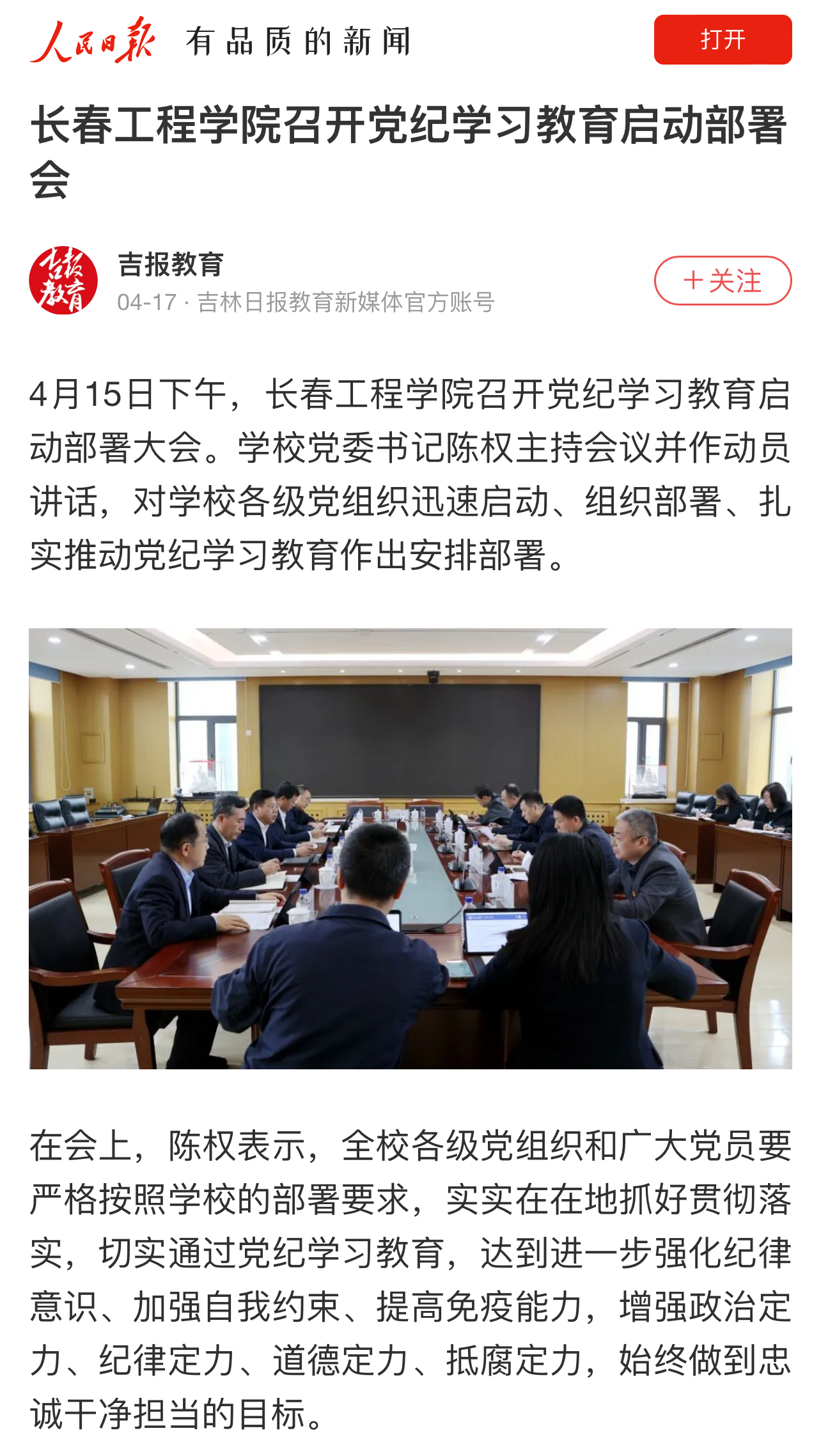 人民日报、吉林日报报道我校党纪学习教育启动部署会