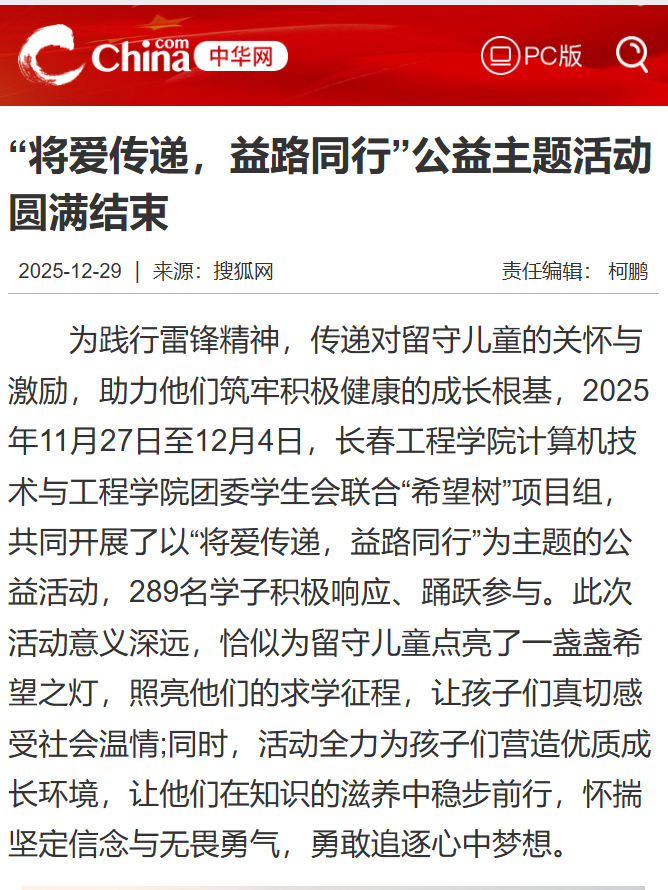中华网报道我校计算机技术与工程学院开展公益活动