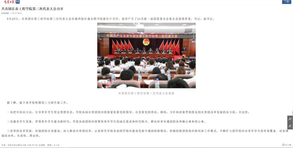 【吉林日报】共青团九游j9官网入口(中国)官方网站第三次代表大会召开