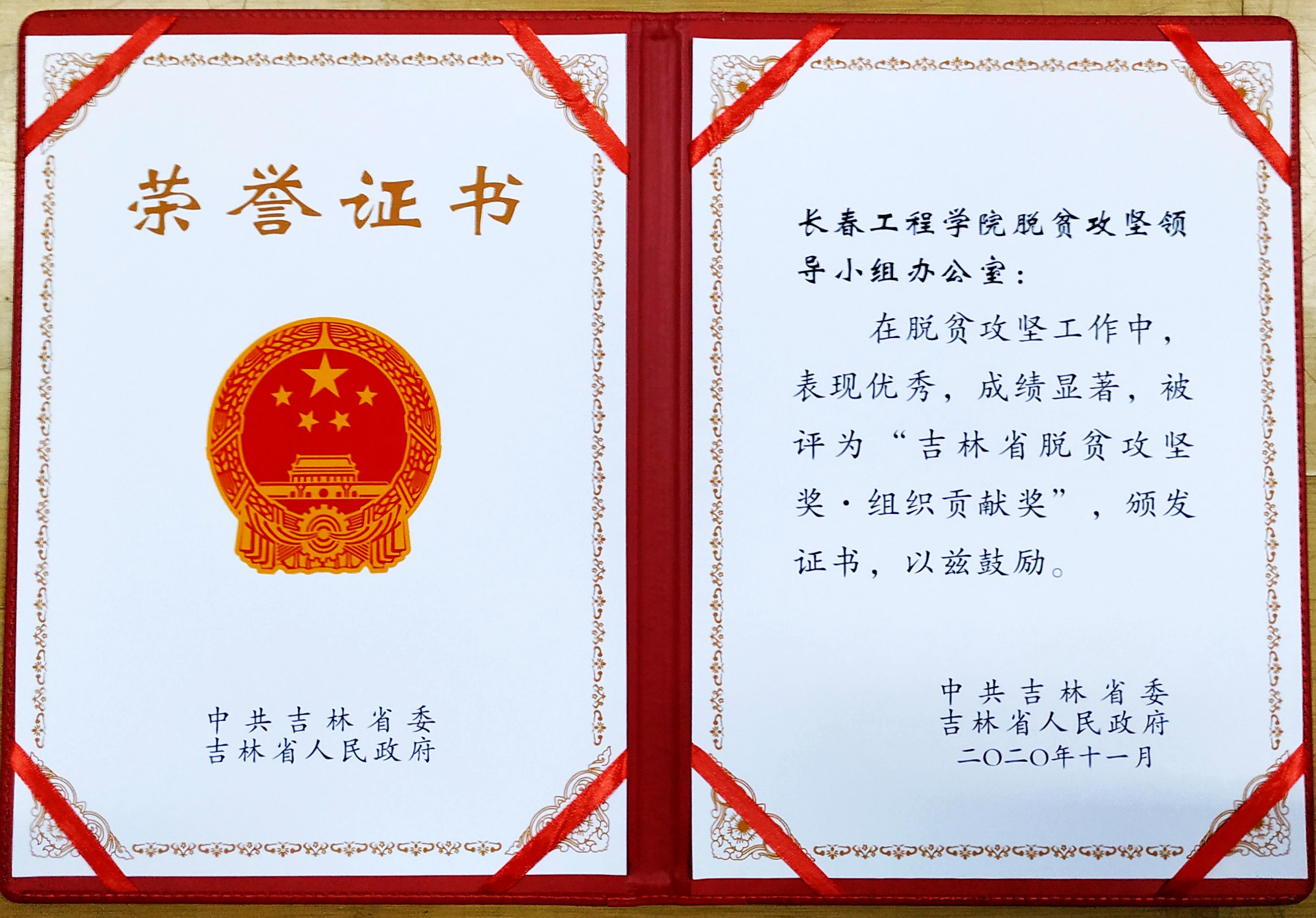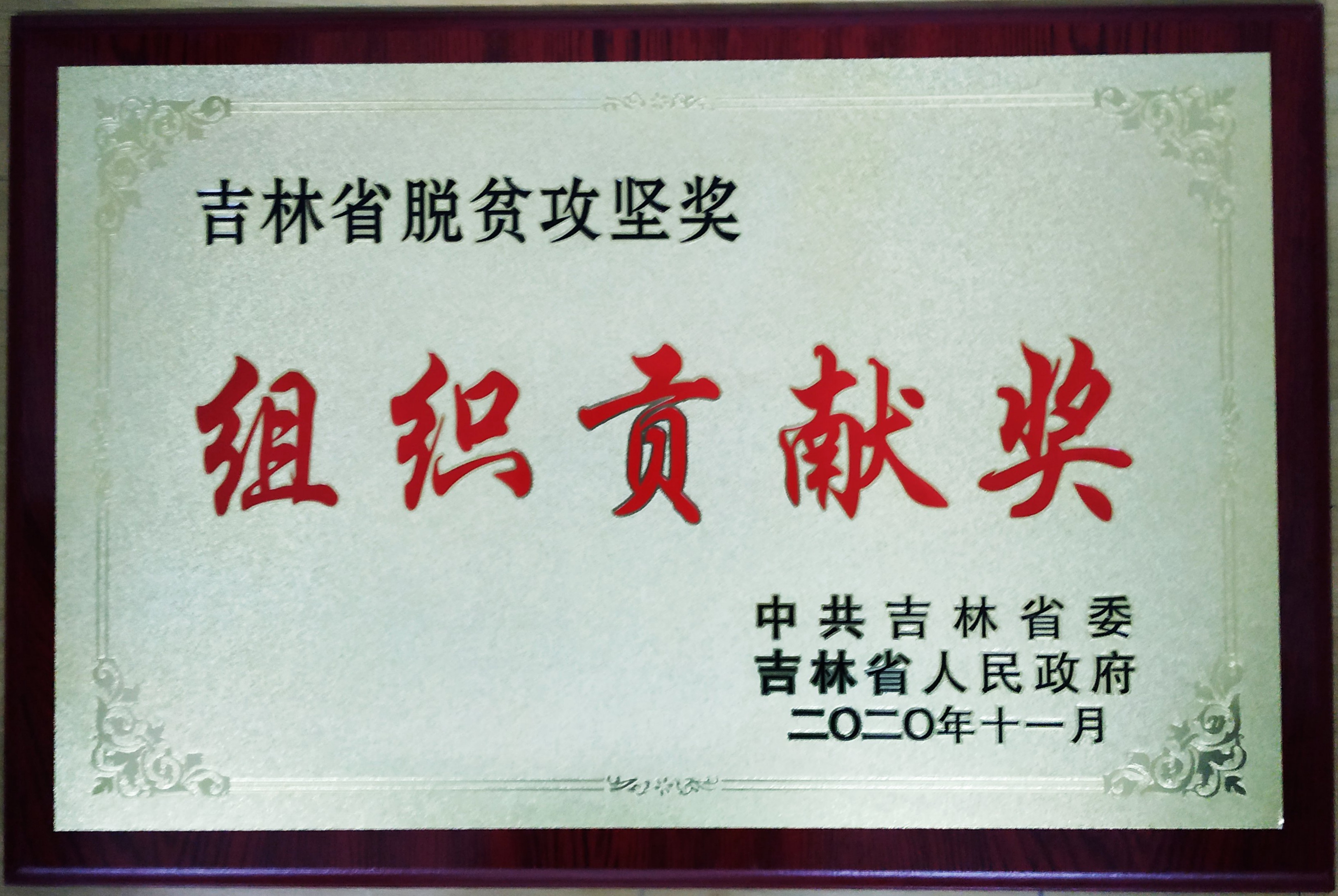 近日,在2020年全省脱贫攻坚表彰大会暨先进事迹报告会上,九游j9官网入口(中国)官方网站脱贫攻坚领导小组办公室被中共吉林省委、吉林省人民政府授予2020年“吉林省脱贫攻坚奖·组织贡献奖”荣誉称号。
